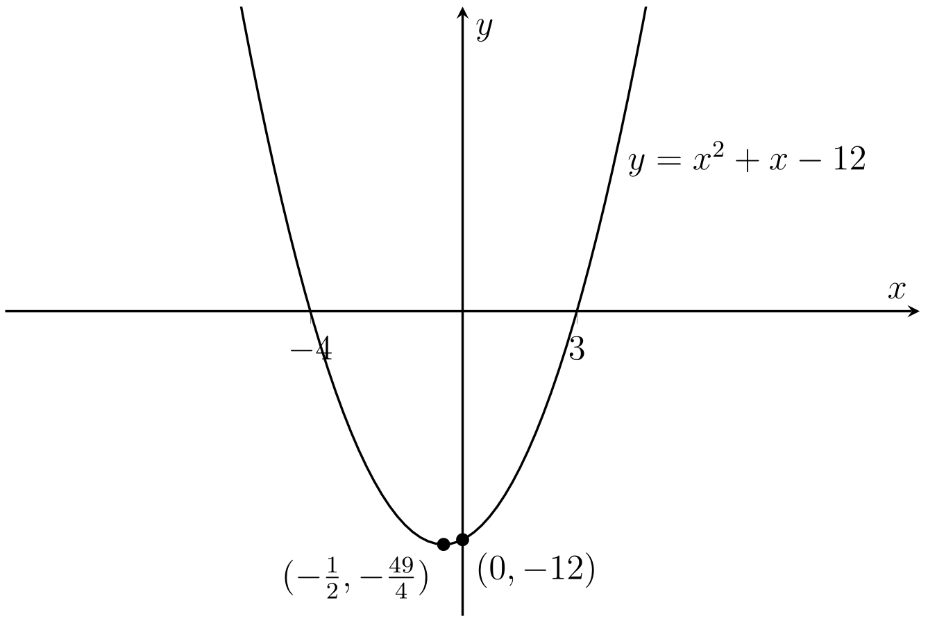 If we sketch the graph of \(y = x^2 +x -12 = (x -\frac12)^2 -\frac{49}4\) we get