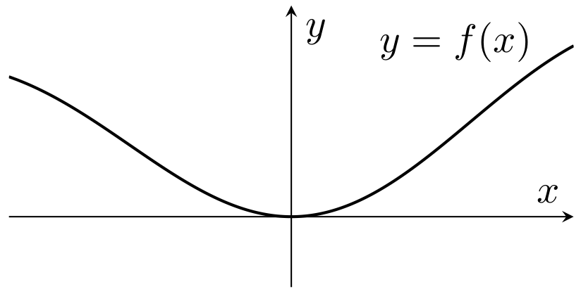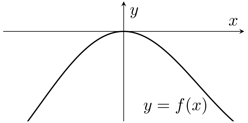 Both show what are known as turning points: Fig. 7.1 shows an example of a local minimum at \(x=0\) and Fig. 7.2 shows an example of a local maximum, again at \(x=0\). Note that in each case, at the turning point the tangent to the curve is horizontal.