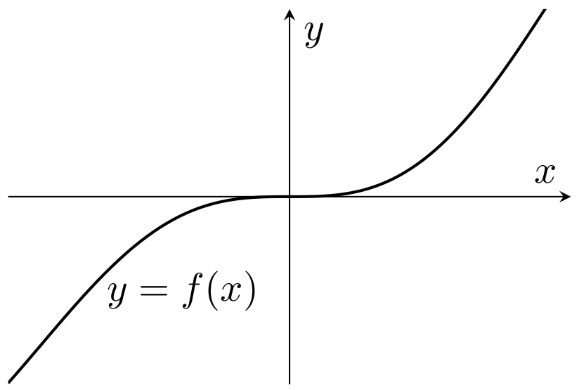 Here, when \(x=0\), we again find that the tangent line is horizontal but this time we have neither a maximum or a minimum. These are examples of a point of inflection.