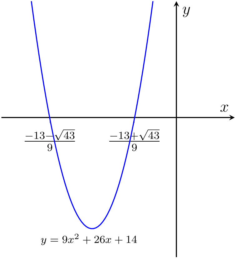 Fig. 69 Graph of \(y=9x^2 + 26x + 14\)#
