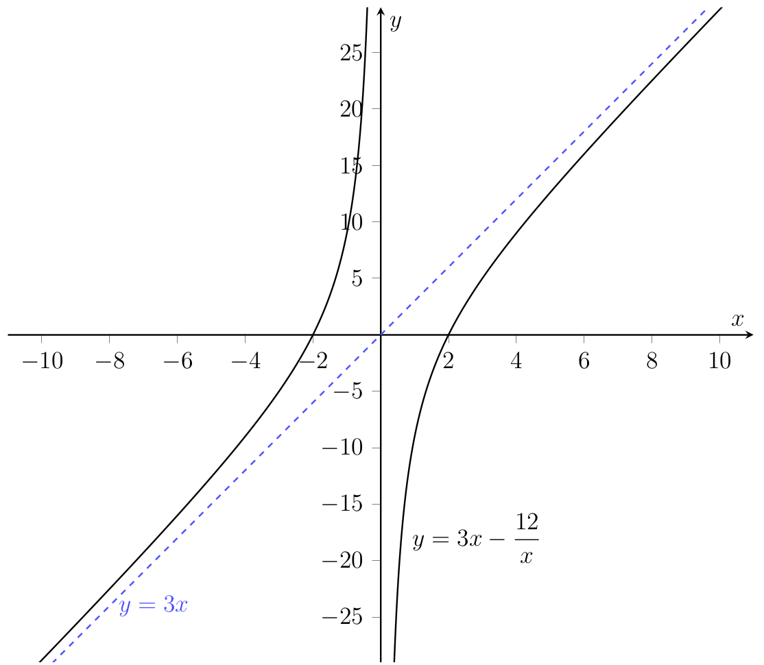 for some constant \(c\). As the tangent at \(Q\) goes through \(Q\) we have \(6 = -6\times (-1) + c\) and so \(c = 0\). Thus