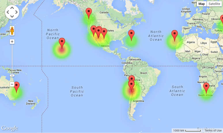 discussed above these are clustered around a few major sites, namely Chile, Hawaii and the