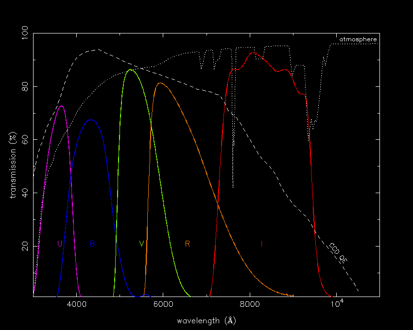 the relatively narrow wavelength range of the UBVRI filters. The solution is to