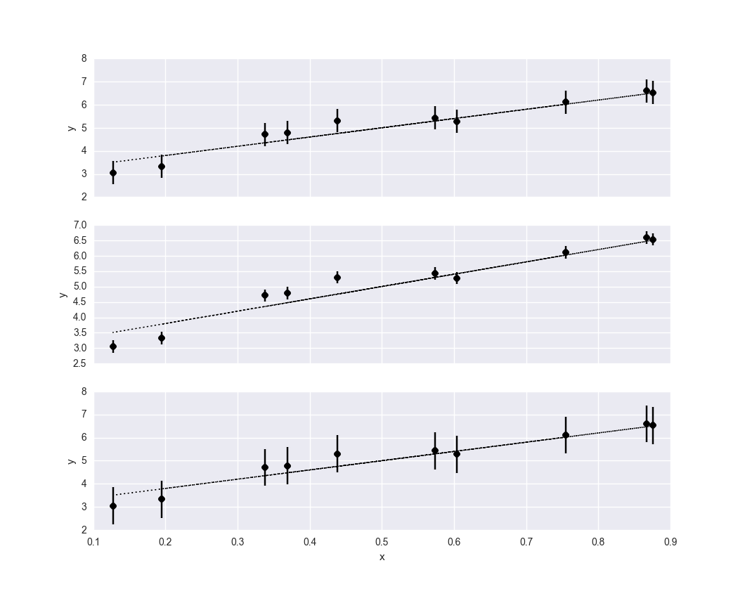 The formal derivation of the uncertainty on \(y\) is not straightforward, but we can get an idea