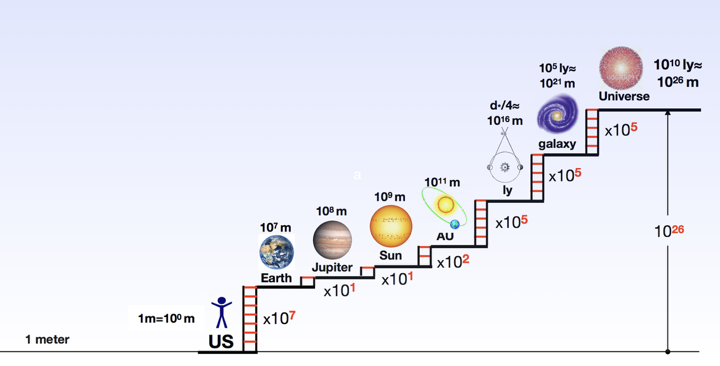Fig. 11 Distance scale of the Universe, spanning 26 orders of magnitude. Courtesy Stan Owocki (Bartol).#