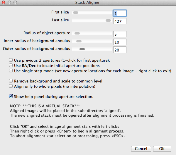 apertures... This brings up the stack aligner window (figure 3). Make sure the Use